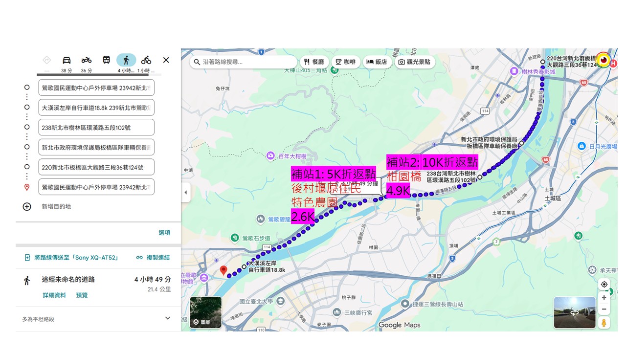 6.精心路線好跑:本活動跑餘左岸河濱路段自行車相較於大漢溪右岸少許多,沿途都是平路、有許多流廁、較少車輛穿越