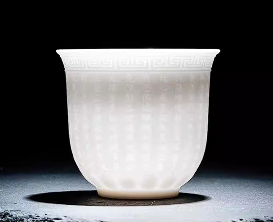 ■白瓷心經杯. 頂級陶瓷有如玉色通透. 心經浮雕 容量210ml