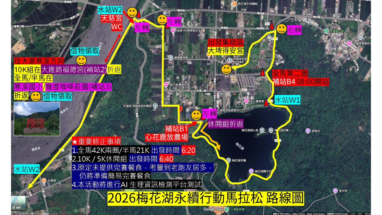 ◆由於梅花湖湖道路車輛管制,將分成兩段前導